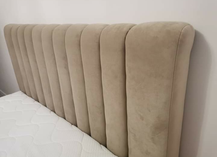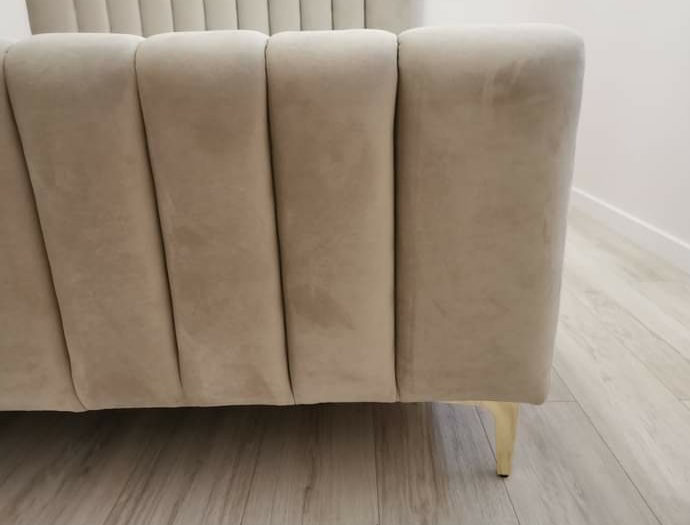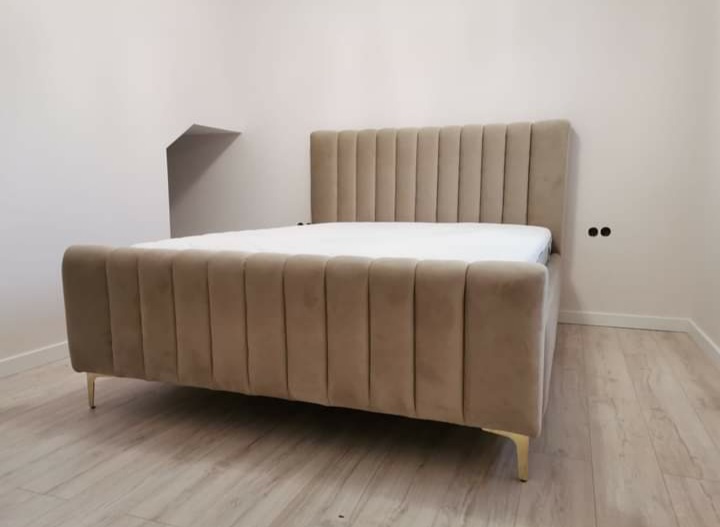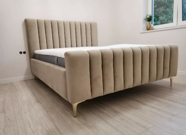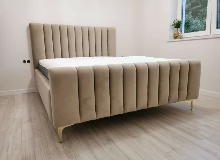 Łóżko wykonane z najwyższej jakości materiałów, aksamitny welur dodający przytulności . Nowoczesna konstrukcja i solidna podstawa .
