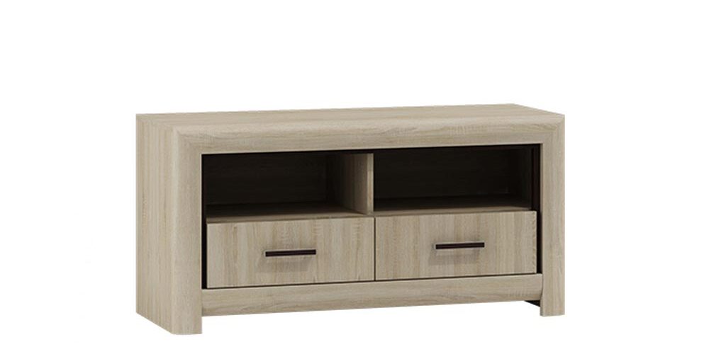 Szafka RTV ART5 Amarant to elegancki i funkcjonalny element wyposażenia wnętrz, idealny do salonu, sypialni czy biura. Wyposażona w dwie pojemne szuflady oraz dwie otwarte komory, zapewnia wystarczającą przestrzeń do przechowywania sprzętu multimedialnego, pilotów czy innych drobiazgów.